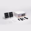 Jokaisessa käsityönä valmistetussa puukotelossa on 1” silkkikupu-diskantti ja 3” pitkäiskuinen alumiininen keskimatala-elementti. Texas Instrumentsin korkean hyötysuhteen suljetun D-luokan audiovahvistimen käyttämät kaiuttimet tuottavat yhteensä 66 W RMS, mikä takaa voimakkaan ja selkeän äänen.
