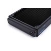 Kierteet: 4 x G1/4" sisään/ulos (maks. 5 mm kierteen pituus) Tuuletinkoko: 120 mm Tuuletinkiinnitys: 2 x yksipuolinen / 4 x molempipuolinen Tuuletinkiinnityksen kierteen koko: M3 Painetestattu: 0,8 bar Maksimi käyttölämpötila: 60°C Lamellien tiheys: 18 FPI Paino: 601 g Väri: Musta