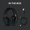 Langaton G435-kuulokemikrofoni, langaton LIGHTSPEED-USB-A-vastaanotin, USB-C–USB-A-latausjohto, käyttäjän dokumentaatio