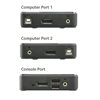 Tietokoneliitännät: 2 Porttivalikoima: Hotkey, hiiri, kaukosäädettävä portin valitsin Liitännät Konsoli: - 2 x USB Type A naaras (musta) - 1 x DisplayPort naaras (musta) - 1 x 3.5mm audio naaras (vihreä)