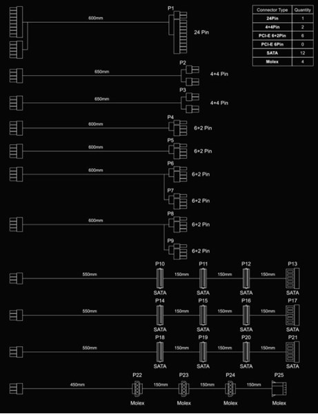 Lähtökaapeleiden tyyppi: Täysin modulaarinen / Litteät kaapelit