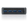 ATEN US434 on USB 3.0 -hubi, joka mahdollistaa neljän USB-laitteen jakamisen neljän eri tietokoneen kesken. US434 tukee jopa 5 Gbps:n tiedonsiirtonopeuksia, ja se on taaksepäin yhteensopiva USB 2.0- ja USB 1.1 -standardien kanssa. Hubi on täydellinen, jos käytössä on suurta kaistanleveyttä vaativia laitteita kuten USB-telakointiasemat tai HD-kamerat. Mukana tulevalla kaapelin päässä olevalla kaukosäätimellä voi valita, mille tietokoneelle USB-signaali ohjataan. Laitteessa oleva LED-valo ilmaisee, mikä tietokone kulloinkin on valittuna.