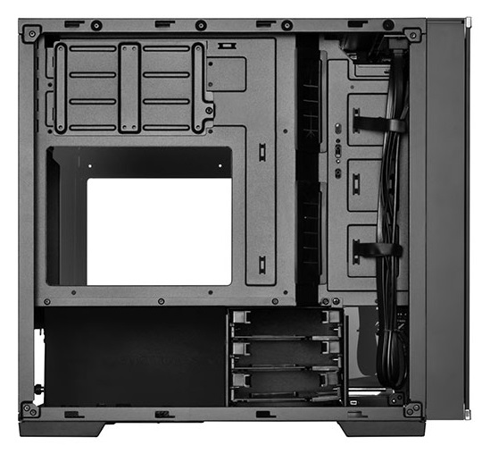 - Joustava kiintolevysovitin voidaan sijoittaa uudelleen, jotta saadaan tilaa jäähdyttimelle tai isolle virtalähteelle