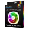 Malli: SST-AP142-ARGB Väri: Läpinäkyvät lavat, musta runko Laakerointi: Dual Ball Bearing Liitännät: 4-pin PWM tuulettimelle, 3-pin WS2812 RGB:lle Luokiteltu jännite: 12V DC Aloitusjännite: 9,6V Luokiteltu virta: 0,11A Luokiteltu teho: 3,84W Nopeus: 500 - 1500 rpm Ilmanvirtaus: 13,62 ~ 44,2 CFM Tehokas ilmanvirran alue: 1m Staatinen paine: 0,15 ~ 2,13 mmH2O Melutaso: 19,25 ~ 23,54 dBA Elinikä: Jopa 70 000h Mitat: 140 x 140 x 25 mm RGB LEDien määrä: 24