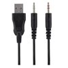 Kuulokkeet kytketään tietokoneeseen kahdella 3,5 mm liittimellä. Niissä on myös USB-A-liitäntä, joka tarjoaa virtaa kupujen ja mikrofonin taustavaloa varten. Vasemman kuulokkeen takaosassa on säädin, jolla voi muuttaa äänenvoimakkuutta.