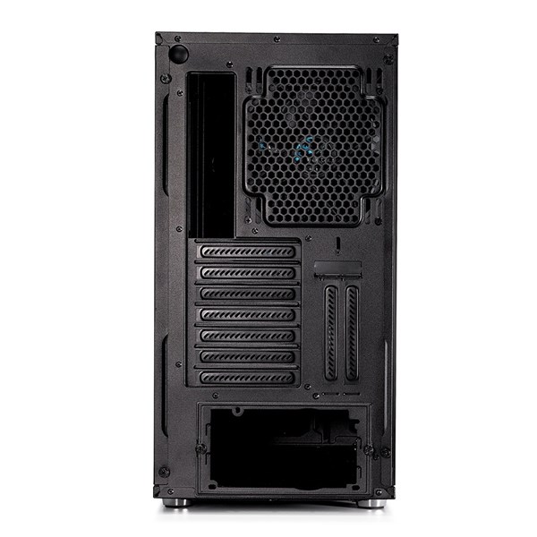 - Täysimittainen virtalähteen peitelevy piilottaa ylimääräiset kaapelit, luoden puhtaan sisustan. Peitelevyssä on myös irroitettava paneeli, mikäli eteen halutaan asentaa suurempi jäähdytin