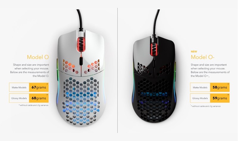 Model O:n hunajakennorakenne tekee hiirestä kevyen ja kestävän sekä varmistaa sen tuulettumisen ja pitää kämmenesi viileinä ja raikkaina. Model O:n puhdistaminen sujuu helposti esimerkiksi paineilman avulla. Myös hiiren kaapeli on kevyt ja taipuisuutensa ansiosta tuo käyttökokemukseen lähes langattoman tuntuman.