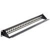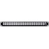 Keystone-portit: 24 kpl, 19,2 x 14,9 mm Asennus: 19" räkit, 1U Printattu nimilevy: Kyllä Irroitettava vedonpoistaja: Kyllä Väri: Musta Mitat (PxLxK): n. 482 x 44 x 92 mm Myyntipakkaus sisältää: - Keystone Patch Panel - maadoituslanka ja ruuvi - 24 nippusidettä