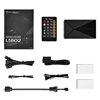 Ominaisuudet: - Kauko-ohjaa valojen väriä, tilaa ja tuulettimien nopeuksia - Etäkäynnistä tai -sammuta tietokoneesi - Automaattisesti tunnistaa lämpötilan muutokset säätääkseen LEDin väriä ja tuulettimen nopeutta - Kuusi porttia Addressable RGB LED-laiteliitännöille - Neljä porttia 4-pin/3-pin tuuletinliitännöille