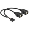 Tämän DeLockin USB-kaapelin avulla voit kytkeä kaksi USB-A -väyläistä USB-laitetta emolevysi sisäisiin pinneihin.