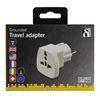 Matka-adapteri, jolla käytät lähes kaikilla pistokkeeilla varustettuja laitteita tavallisessa suomalaisessa/EU pistorasiassa.