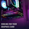- Kiinnitettävä bracket, jolla voit asentaa tuulettimesi PCIe-paikkaan - toimittaa ylivertaista jäähdytystä näytönohjaimellesi