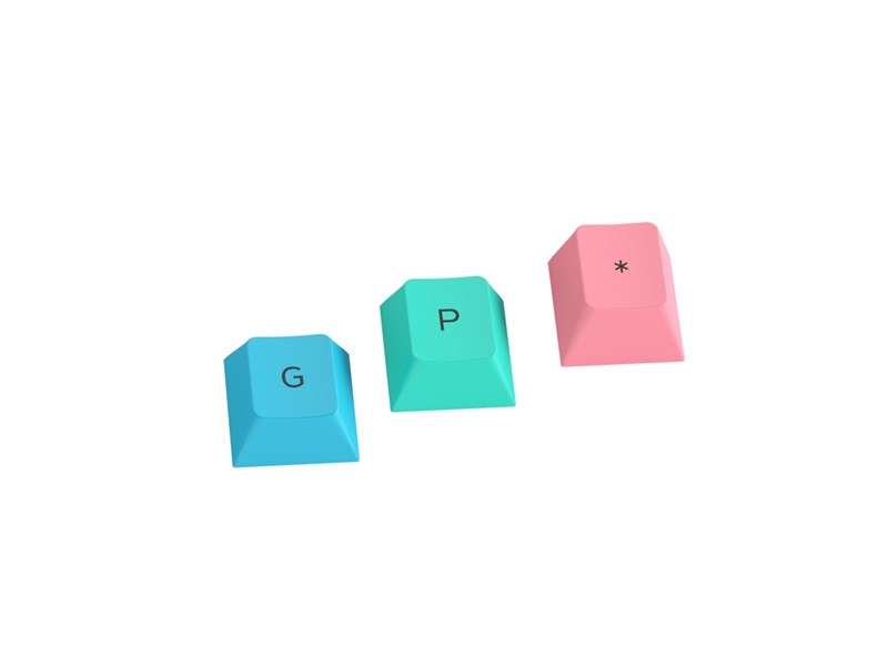 Näppäinhattusarja värissä Pastel, 115 PBT-muovista näppäinhattua, läpinäkymätön kulutuskestävällä merkistöllä.