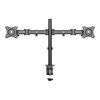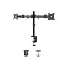 Yleistä Minimi ruudun koko: 10" Maksimi ruudun koko: 30" Minimi paino: 0 kg (per ruutu) Maksimi paino: 8 kg (per ruutu) Ruutujen määrä: 2 VESA-kuvio: 75x75, 100x100 mm VESA minimi: 75x75 mm VESA maksimi: 100x100 mm Pöytään asennus: Läpivienti, puristin