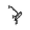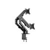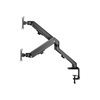Neomounts FPMA-D650DBLACK on täysliikkeinen pöytäkiinnike kahdelle enintään 27 tuuman litteille näytöille, joiden enimmäispaino on 7 kg. Monipuolinen kallistus (130°), kääntö (360°) ja pyöritystekniikka (180°) -tekniikka mahdollistaa kiinnikkeen asettamisen mihin tahansa katselukulmaan, jotta litteiden näyttöjen ominaisuudet voidaan hyödyntää täysimääräisesti. Lisäksi telineessä on jousiavusteinen korkeussäätö (11–42 cm) ja syvyyssäätö (0–49,4 cm), jotta työasento voidaan säätää täydelliseksi. Älykkäät kaapelien hallintaklipit varmistavat kaapeleiden siistin reitityksen.