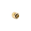Materiaali: Messinki Viimeistely: Kulta Kierre: G1/4" BSPP; 4,5 mm uroskierteen pituus Tuetut letkut: 10/16 mm (sisä-/ulkohalkaisija) Liittimen ulkohalkaisija: 23 mm Korkeus asennettuna: 19 mm Yhteensopiva pehmeä letku: PVC, EPDM, Norprene, silikoni ja muut taipuisat letkut