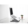 Neomounts teline tabletille ja kannettavalle tietokoneelle, malli NSLS075BLACK, on yleisteline kannettaville tietokoneille. Se tarjoaa viisi eri kallistusasentoa (10–60°) maksimaalisen katselumukavuuden takaamiseksi. Helppo taittaa tasaiseksi, kevyt ja kannettava. Ontto rakenne, valmistettu jauhemaalatusta teräksestä ja varustettu luistamattomilla silikonityynyillä, estää ylikuumenemisen ja takaa tabletin ja kannettavan tietokoneen maksimaalisen nopeuden.