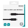 USB-C 2.0 -kaapeli, 2 m, USB-IF:n sertifioima, 480 Mbit/s, musta