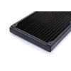 Kierteet: 2 x G1/4" sisään/ulos (maks. 5 mm kierteen pituus) Tuuletinkoko: 140 mm Tuuletinkiinnitys: 2 x yksipuolinen / 4 x molempipuolinen Tuuletinkiinnityksen kierteen koko: M3 Painetestattu: 0,8 bar Maksimi käyttölämpötila: 60°C Lamellien tiheys: 19 FPI Paino: 569 g Väri: Musta
