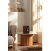R1380T-hyllykaiuttimien kauniit puiset sivupaneelit tekevät vaikutuksen, esimerkkinä eleganssista ja ylellisyydestä.