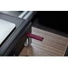 Helposti yhdellä kädellä käytettävä liukukorkki, LED-merkkivalo ja käytännöllinen lenkki avaimenperälle.
