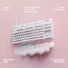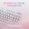 Sen valkoinen ulkoasu ja pilvenpehmeä kämmentuki liidättävät sinut unelmiisi. Kompaktin numeronäppäimistöttömän koon ja säädettävän korkeuden ansiosta pitkätkin pelisessiot tuntuvat mukavilta.