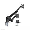 Neomounts DS70-810BL2 on täysliikkeinen pöytäkiinnike kahdelle enintään 32 tuuman litteille näytöille, joiden enimmäispaino on 9 kg näyttöä kohti. Monipuolinen kallistus (90°), kääntö (360°) ja pyöritystekniikka (180°) -tekniikka mahdollistaa kiinnikkeen asettamisen mihin tahansa katselukulmaan, jotta näytön ominaisuudet voidaan hyödyntää täysimääräisesti. Lisäksi telineessä on kaasujousella säädettävä korkeus (26,5–55 cm) ja syvyys (0–49 cm), jotta voit luoda täydellisen työasennon. DS70-810BL2-mallissa on myös kätevä 180°:n pysäytysmekanismi, jonka ansiosta telinettä voi säätää turvallisesti myös seinän tai väliseinän lähellä ilman, että se koskettaa niitä. Älykkäät kaapelien hallintaklipit varmistavat kaapeleiden siistin reitityksen.