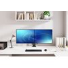 Neomounts DS75-450BL2 NEXT Core on täysliikkeinen työpöytäteline kahdelle enintään 32 tuuman litteälle näytölle, joiden enimmäispainokapasiteetti on 8 kg näyttöä kohti. Monipuolisen kallistus- (20°), kierto- (360°) ja kääntötekniikan (20°) ansiosta kiinnike voidaan muuttaa mihin tahansa katselukulmaan, jotta näytön ominaisuudet saadaan täysin hyödynnettyä. Lisäksi kiinnikkeessä on kaasujousen korkeussäätö (27,7-56 cm) ja syvyyssäätö (0-50,5 cm) täydellisen työskentelyasennon luomiseksi.
