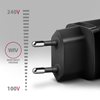 - Wide Input Voltage - laajan tulojännitealueen toiminto; se suojaa sovitinta ali- ja ylijännitteeltä tulossa ja mahdollistaa useampien "kansallisten tehostandardien" käytön.