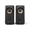 Me emme säästele äänentoiston suorituskyvyssä. Creative T60 -kaiuttimissa on kaksi tehokasta 2,75 tuuman koko taajuusalueen kattavaa elementtiä sekä sisäänrakennettu digitaalinen vahvistin, joka toistaa koko äänialan tasaisen laadukkaasti. Tämän 2.0-kanavaisen äänijärjestelmän akustinen teho on 30 W RMS ja huipputeho jopa 60 W.
