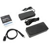 Yhden USB 3.2 Gen 2 Type-C -portin ja neljän USB 3.2 Gen 1 Type-A -portin ansiosta uusimpien näppäimistöjen, ulkoisten asemien ja muiden oheislaitteiden kytkeminen on helppoa työtilakokemuksen mukauttamiseksi. Telakassa on myös pikalatausportti älypuhelimen, tabletin tai muiden laitteiden lataamista varten.