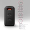 AXAGON ACU-DPQ100 GaN-matkaseinälaturi mahdollistaa jopa kolmen mobiililaitteen nopean lataamisen samanaikaisesti.