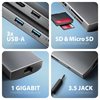 Voit helposti ja nopeasti liittää tietokoneeseen samanaikaisesti monitorin, kolme USB-laitetta, Gigabit Ethernet -verkon, mikrofonilla varustetut kuulokkeet ja SD-kortinlukijan kaksipuolisen USB-C-liittimen kautta.