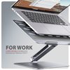 Jalustassa olevat leikkaukset takaavat kannettavan tietokoneen optimaalisen lämmöntuottamisen, mikä lisää sen suorituskykyä ja kestävyyttä. Hienostuneen muotoilun ansiosta voit helposti säätää kallistuskulmaa, vaikka laite olisi parhaillaan käytössä, jotta työskentely olisi mahdollisimman mukavaa ja tehokasta.