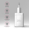Kompakti seinälaturi AXAGON ACU-PD20 mahdollistaa mobiililaitteiden nopean latauksen. Laturi lataa puhelimia, tabletteja ja muita mobiililaitteita 20 W:n maksimiteholla suurimmalla mahdollisella nopeudella. Sovittimessa on käännettävä USB-C-liitin. Laturi on varustettu Power Delivery 3.0 / Quick Charge 4+ USB Type-C:llä, joka mahdollistaa älypuhelinten ja tablettien nopean latauksen jopa 20W teholla. Laturi tukee 20W PD-latausta iPhone 12, 13, 14 ja 15 -puhelimille sekä niiden Pro- ja Pro Max -malleille. Sovitin on yhteensopiva myös muiden puhelinten nopean latauksen standardien kanssa, kuten Apple iPhone, iPad, Samsung, Huawei, Honor, Xiaomi. Edistyksellinen suojausjärjestelmä lataussovittimen ulostulossa suojaa ladattavaa laitetta vaurioilta. Laturitoiminto tunnistaa myös ladattavan laitteen ja valitsee optimaalisen latausnopeuden ja -kulun. Laturisovittimen rungossa on miellyttävä muoto ja kompakti koko. Pienten mittojen ja laajan tulojännitealueen yhdistelmä tekee laturista ihanteellisen matka-apurin.