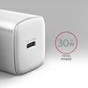 Kompakti USB-seinälaturi AXAGON ACU-PD30 mobiililaitteiden nopeaa latausta varten. Maksimitehollaan 30 W laturi lataa puhelimia, tabletteja ja muita mobiililaitteita suurimmalla mahdollisella nopeudella. Sovittimessa on käännettävä USB-C-liitin. Kompaktin koon ja korkean suorituskyvyn antaa käytetty uusi Sil-teknologia . Super silicon käyttää edistyksellisiä piipohjaisia materiaaleja. Näin laturilla voidaan saavuttaa pienemmät mitat ja samalla turvallinen, vakaa ja nopea lataus. Tehokkuus on näin ollen sama kuin GaN-tekniikassa, mutta samalla edullinen hinta. Laturi on varustettu Power Delivery 3.0 / Quick Charge 4+ USB Type-C:llä, joka mahdollistaa älypuhelinten ja tablettien nopean latauksen jopa 30 W:n teholla. Laturi tukee 20W PD-latausta iPhone 12, 13, 14 ja 15 -malleille ja tarjoaa myös 27W PD-latauksen iPhone 13 Pro, 14 Pro, 15 Pro ja niiden Pro Max -malleille. Lisäksi se tukee 25W SFC-latausta Samsung Galaxy S20 - S24, Note ja Z Fold -sarjoille ja tarjoaa myös 30W SFC-latauksen Samsung Galaxy S20 - S24 Ultra, Tab S7+ - S9+, Tab S8 - S9 Ultra -malleille. Sovitin on yhteensopiva myös muiden nopeiden puhelinten latausstandardien kanssa, kuten Apple iPhone, iPad, Samsung, Huawei, Honor, Xiaomi. Edistyksellinen suojausjärjestelmä lataussovittimen ulostulossa suojaa ladattavaa laitetta vaurioilta. Laturitoiminto tunnistaa myös ladattavan laitteen ja valitsee optimaalisen latausnopeuden ja edistymisen. Laturisovittimen rungossa on miellyttävä muoto ja koko. Verrattuna samoilla parametreilla varustettuihin klassisiin lataussovittimiin laturin koko on kolmanneksen pienempi. Sil-tekniikalla saavutettujen pienten mittojen ja laajan tulojännitealueen yhdistelmä tekee laturista ihanteellisen matka-apurin.