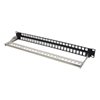 Keystone-kytkentäpaneeli, johon voi asentaa haluamansa liitinmoduulit. Tuote vie ainoastaan 1U:n virran tilaa, mutta se sisältää peräti 48 porttia. Kaapeleita varten on erilliset läpiviennit, jotka pitävät ne lujasti paikallaan. Liitäntöjen kohdalla on kaksinkertainen metallikehikko.