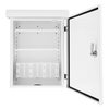 Valkoinen IP55-luokiteltu kaappi, jossa on paljon tilaa kompaktista koostaan huolimatta. Suojaluokituksensa ansiosta tuote toimii erinomaisesti myös ulkokäytössä. Mukana tulee sekä seinä- että pylväskiinnikkeet.