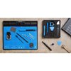 Haluatko ottaa FixMatin mukaan matkalle? Jäykän taustalevyn ja korotetun reunuksen ansiosta voit kuljettaa monimutkaisiakin projekteja turvallisesti, ja lisäksi se on loputtomasti pinottavissa. Ja tietysti voit tehdä kaiken varmana tietäen, ettei staattisella purkauksella ole mitään mahdollisuuksia. Se on onnistuneen korjauksen suunnitelma.