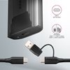 - Mukana toimitetaan 50 cm pitkä USB-tyypin C uros / USB-tyypin C uros -kaapeli ja USB-tyypin C naaras / USB-tyypin A uros -sovitin.