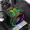 Erittäin suorituskykyisessä premium-kaksoistuulettimella varustetussa CPU-jäähdyttimessä on täysi aRGB-valaistus, ja siinä on käänteinen tuuletin yksisuuntaista virtausta varten, mikä parantaa jäähdytyksen tehokkuutta. Kahden 120 mm:n tuulettimen, älykkään PWM-nopeudensäädön ja neljän kuparisen lämpöputken ansiosta se pystyy käsittelemään suorittimia, joiden TDP-arvo on enintään 210 W.