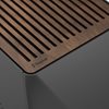 Tyylikäs, veistetty muotoilu, jossa on eloksoitu alumiininen ulkokuori ja massiivinen pähkinäpintainen yläpaneeli.