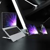 Kannettavan teline on valmistettu kestävästä alumiinista tukemaan kannettavia ja useita muita laitteita, kuten tabletit, kirjat ja vastaavat esineet. Se taitettava design mahdollistaa helpon säilytyksen tai kuljetuksen. Katsomiskulman ja -korkeuden voi säätää tarpeiden mukaisesti ja katsomiskokemuksen optimoimiseksi.