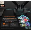 • Täysin säädettävä kaasujousitettu kaksoismonitorikiinnike, jossa on 10-in-1-telakka.