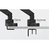 • Täysin säädettävä kaasujousitettu monitorikiinnike, jossa on 6-in-1-telakka.