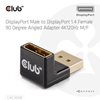 CAC-1008 DisplayPort uros - DisplayPort 1.4 naaras 90 asteen kulmasovitin 4K120Hz uros/naaras on monipuolinen kulmaliitinsovitin, joka tarjoaa kaapelinhallintaratkaisuja. Tämän sovittimen avulla voit välttää muiden porttien tukkimisen isäntälaitteessasi. Myös näytöille, joissa DisplayPort-tulo on tiukassa paikassa, tämä voi olla helppo ratkaisu, jotta muita portteja ei tukita ja/tai kaapeleita ei taivuteta. Tämä setti sisältää yhden sovittimen ja on universaali niiden käytössä tukemaan jopa 4096 x 2160 näytön resoluutioita 120 Hz taajuudella tai 7680 x 4320 30Hz taajuudella. Sovittimet on todennettu Club 3D -tuotteiden kanssa tukemaan näitä resoluutioita. On tärkeää, että lähde ja näyttö tukevat DP1.4:ää ja että kaapelit on suunniteltu tukemaan tätä kaistanleveyttä.