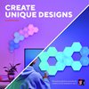 Vybz Hexagon RGB LED-valopaneelin RGB-valopaneelin aloitussarjalla saat huoneeseesi paljon viileyttä ja värejä. Aloita valaistusmatka tällä 9 paneelin paketilla ja laajenna jopa 21 paneeliin 3-pakkauksen laajennussarjalla. Aloitetaan valaistus!