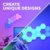 Vybz Hexagon RGB LED-valopaneelin RGB-laajennussarjan avulla saat huoneeseesi paljon viileyttä ja värejä. Käytä näitä kolmea paneelia laajentaaksesi Starter Kitin jopa 21 paneeliin ja valaise tilasi täydellisesti. Mielikuvituksesi on rajana!