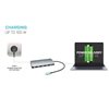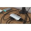 Pieni metallinen USB-C-telakointiasema, joka tukee jopa kolmea ulkoista näyttöä samanaikaisesti*. Liitä kannettava tietokone tai tabletti (ajureita ei tarvitse asentaa) ja hyödynnä nopean USB-tiedonsiirron edut, yhteys internetiin LAN-portin kautta ja mahdollisuus liittää kuulokkeet. Telakointiasema voi tietysti myös syöttää kannettavaan tietokoneeseesi jopa 100 W:n tehon, joten voit ladata kaikki kannettavat tietokoneet ja tabletit, jotka tukevat latausta USB-C:n kautta (USB-C Power Delivery).