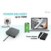 Universal 100 W USB-C-virtalähde kannettavien tietokoneiden, tablettien, älypuhelinten ja muiden USB-C-latausportilla varustettujen laitteiden virransyöttöön.